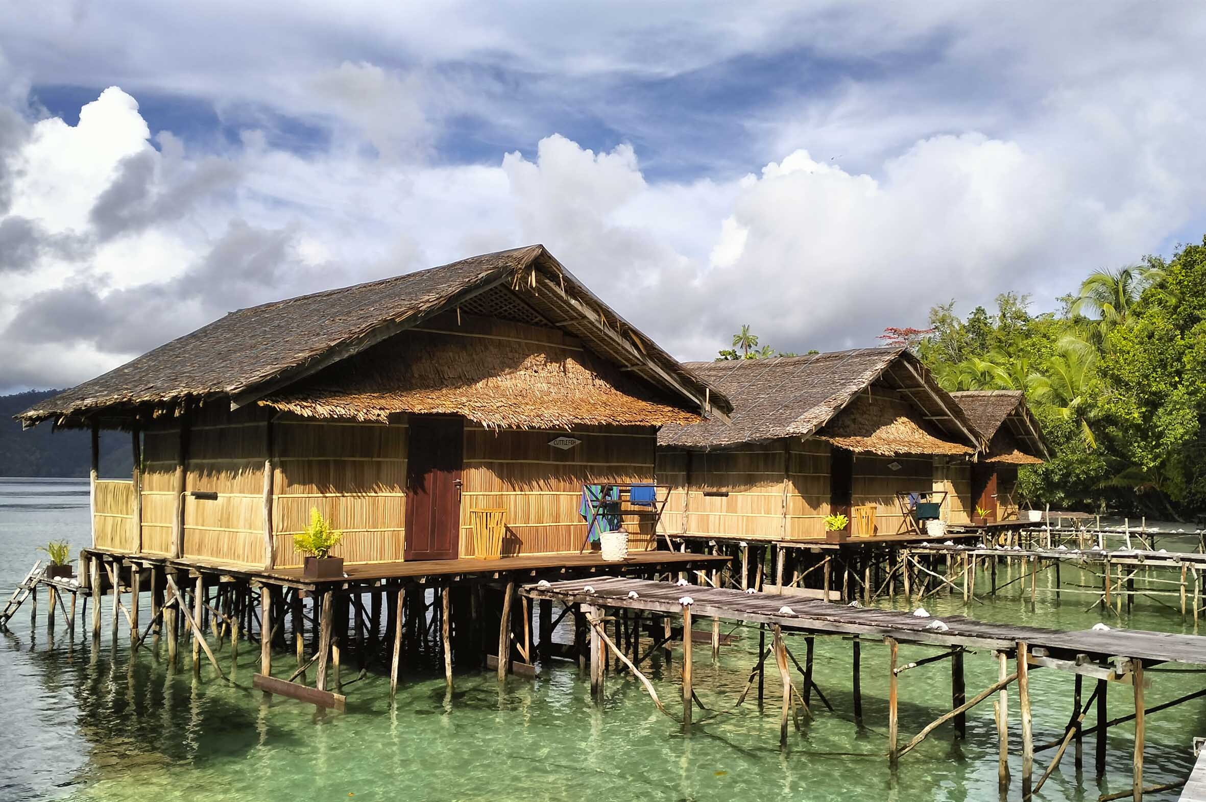 En el nostre cas, ens allotgem en un ecoresort a l’illa de Ketembe, un lloc molt especial perquè et permet viure Raja Ampat des de dins, no des d’una versió domesticada de l’arxipèlag. Això sí, convé explicar-ho bé: parlem d’un allotjament remot, amb ventilador en lloc d’aire condicionat, electricitat amb horaris i bany privat amb aigua mixta dolça i salada. No és un resort convencional. I precisament aquí hi ha part del seu encant.