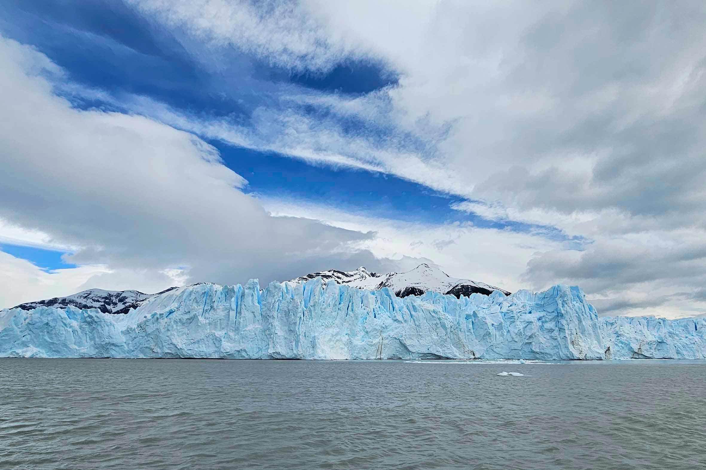 El glaciar Perito Moreno se despliega a lo largo de más de 30 kilómetros y se eleva hasta 70 metros sobre las aguas del Lago Argentino. Su superficie, atravesada por grietas y seracs de un azul profundo, desciende lentamente desde el Campo de Hielo Patagónico Sur.